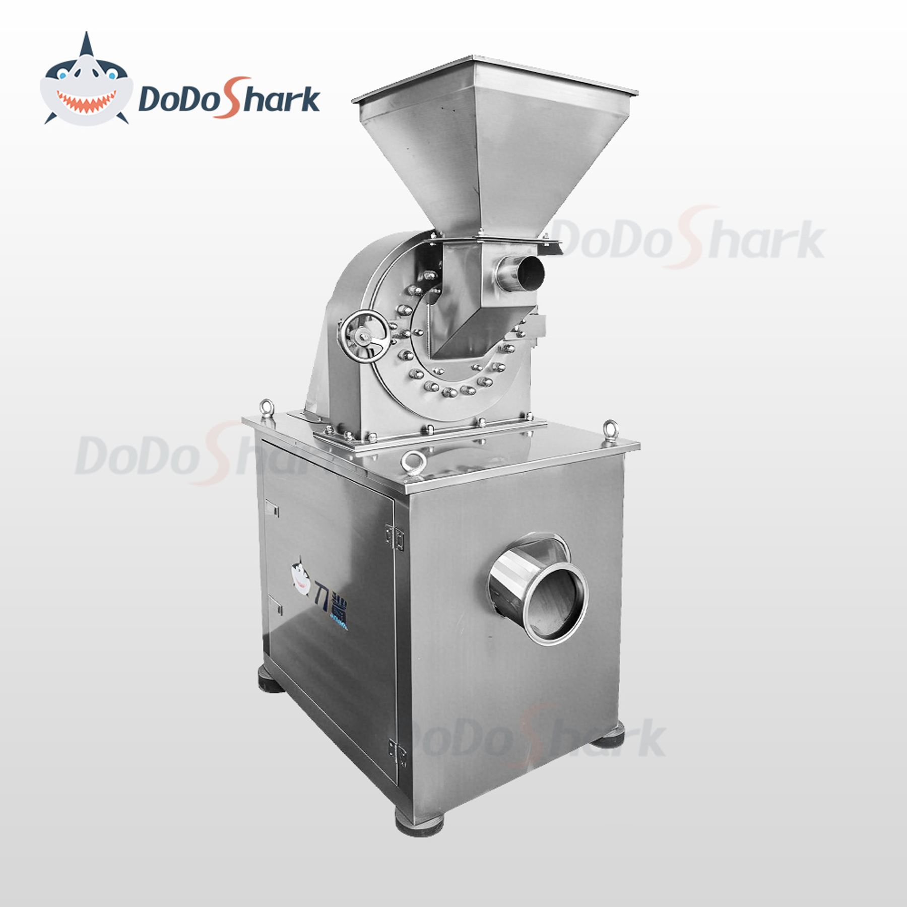 The DoDoShark 304 Stainless Steel Tooth-Claw Grinder is a mechanical grinding machine constructed from 304 stainless steel components, including the housing, T-type tooth claws, hexagonal teeth, rotating disc, stationary disc, and screen mesh. It is specially designed for food and chemical materials, offering excellent corrosion resistance and rust prevention, and is suitable for both dry and wet processing applications (such as powders and paste-type materials). It is suitable for the fine processing of grains, moisture-containing foods, traditional Chinese medicinal materials, and chemical raw materials. The particle size can be controlled by interchangeable screen meshes, with an adjustable fineness range of 10–150 mesh.